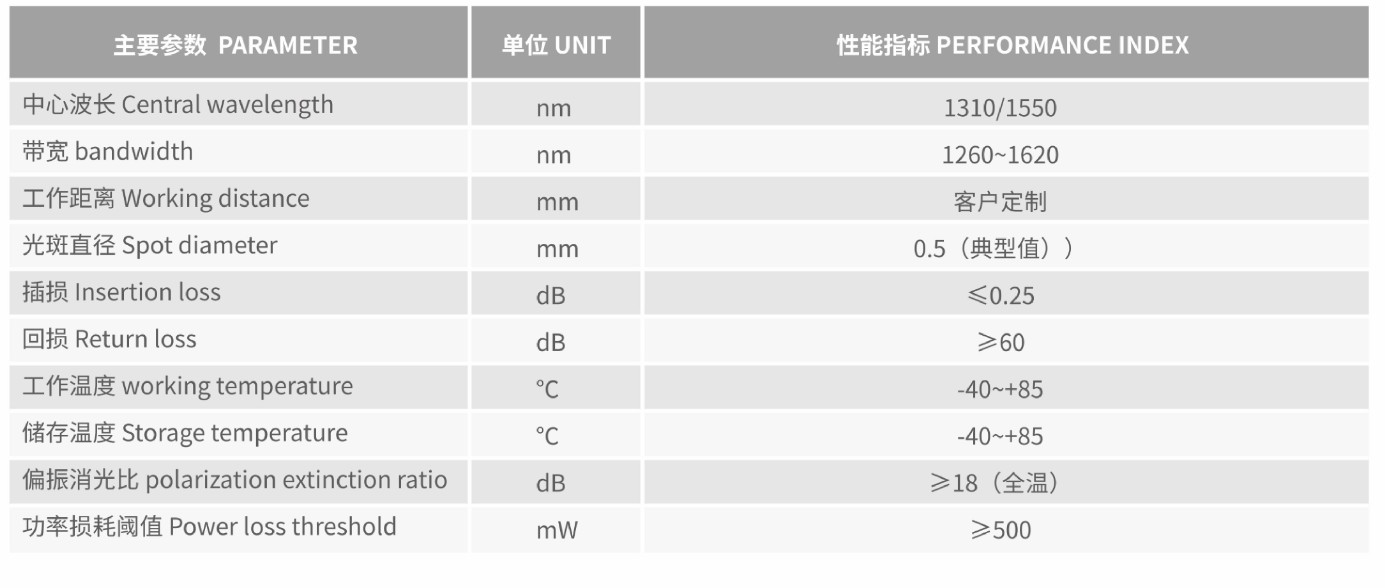 保偏光纖準直器屬于光纖通訊光器件的用于輸入輸岀的一個光學元器件,光纖傳出的發散光裝置通過前置的類似凸透鏡變成平行光(高斯光束)。它的作用是使光最大效率的耦合進入所需的器件中或易如接受光信號最大效率的接受。